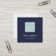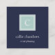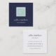 Modern yet classic navy blue business card design features a square element in pastel mint green holding your single initial monogram, with your name and title or business name beneath in lowercase serif lettering. Personalize the reverse side with your contact details in matching navy. A contemporary choice for any occupation; sample shown for event planners.