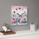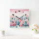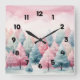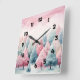 Mint and Pink Fir Trees Winter Scene Square Wall Clock