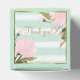 Mint and pink baby shower favor box with pretty watercolor mint strip background and soft pink floral accents. This beautiful mint, pink and gold baby shower favor box can be customized with the text of your choice in the font style and color you prefer. You can also change the background color and remove all text.