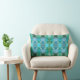 A pillow with a geometric patterned design in mint, blue, teal, turquoise and green. You can customize by dragging, rotating or scaling the design as well as by adding text if you like.