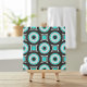 Modern vibrant ceramic tile design featuring a seamless mosaic pattern made of geometric shapes in teal, black and white.