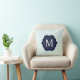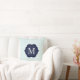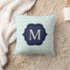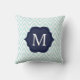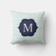 Mint Blue & White Chevron Navy Monogram Design Throw Pillow