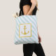 Mint Blue White Stripes Golden Anchor Tote Bag