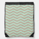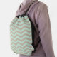 Mint chevrons on an illustrated burlap background decorate this drawstring backpack.