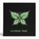 Butterfly icon composed of green mint leaves. Custom background color. Custom front and spine text.