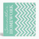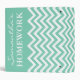 Personalized mint green and white chevron pattern ring binder for school kids and teachers. Custom homework book personalizable with name monogram, zig zag pattern print and elegant label. Cute personalized Christmas or Birthday gift idea for men women and teen kids. Create your own for teaching wife, educator husband, dad, mom, mother, aunt, sister, grandma, daughter, girl etc. Stylish zigzag stripe organizer, inserts not included. Big large thick folder with trendy print. Pretty DIY organizer design with classy script calligraphy typography in white color. Also makes a beautiful binder for coupons, recipes, office, card collector etc. Just change the wording. Customizable background color. Handy for kindergarten, grammar school, high school, college, university etc.