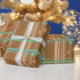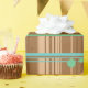 Minty green and blue on a chocolatey brown background will wrap your packages in good taste.