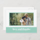 This wedding thank you postcard features a mint color block along with space for your favorite wedding photo. The back of the postcard has space for a personal message.