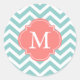 Mint & Coral Zigzags Pattern Monogram Classic Round Sticker