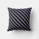 This throw pillow design features stripes colored mint cream, sienna, dark gray, blue, and black.