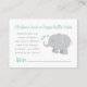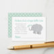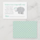 Mint Elephant Book or Diaper Raffle Baby Shower Enclosure Card