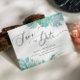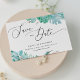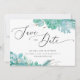 Watercolor mint floral succulents Save the Date with elegant script for winter wedding.