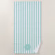 This beach towel is perfect for your summer days by the pool or at the beach... mint green French beach cabin inspired stripe with script font monogram. Personalize with your own initial. Matching accessories available in our French Beach Cabin Collection.