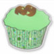 Sticker featuring a Cupcake with green mint frosting topped with chocolate curls, in a decorative, green fractal cupcake wrapper