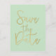 Mint & Gold SAVE THE DATE Modern Script Postcard.