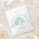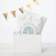 Celebrate your little one's birthday with this cute boho rainbow illustration with a cute heart in mint-green and blue tones with a customizable name.