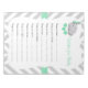 Mint Green and Gray Elephant Baby Shower Game - Wishes for Baby Notepad ready for you to personalize. ⭐This Product is 100% Customizable. Graphics and / or text can be added, deleted, moved, resized, changed around, rotated, etc... 99% of my designs in my store are done in layers. This makes it easy for you to resize and move the graphics and text around so that it will fit each product perfectly. ⭐ (Please be sure to resize, change, add, delete or move any graphics or text if needed before ordering) You can also "TRANSFER DESIGN" on other Zazzle products and adjust the design to fit most of Zazzle items. (button is down on the right side of the page) Some of the text graphics have ready to fill in the box(es) or you can Click on the "CUSTOMIZE" button to add, move, delete, resize, background color or change any of the font or graphics. The design is made with high resolution vector and/or digital graphics for a professional print. ⭐NOTE: (THIS IS A PRINT. All zazzle product designs are "prints" unless otherwise stated under "About This Product" area) The design will be printed EXACTLY like you see it on the screen and on the product...so please make sure when you do your changes on the resizing of any of the graphics or text that it fits in the areas correctly and that your spelling and wording is how you like it to be in size, color and font. If you have any questions about the "DESIGN ONLY" or need help please contact me at siggyscott@comcast.net or visit my store link: https://www.zazzle.com/store/designsbydonnasiggy (Copy and Paste) I'll be happy to help. ⭐ All other questions (shipping, refund, the printing, the product, etc...) please contact Zazzle or the Maker ⭐DIRECTLY⭐. Thank you for the support and stopping by my store - DesignsbyDonnaSiggy. © Donna Siegrist ⭐⭐⭐ ZAZZLE promises 100% satisfaction.