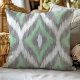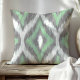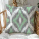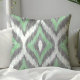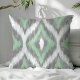 Mint Green and Gray Ogee Ikat Pattern Throw Pillow