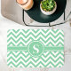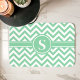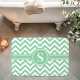 Freshen up your bathroom decor with this mint green and white chevron monogram bath mat. The trendy zigzag pattern adds a modern, stylish touch, while the customizable central monogram makes it uniquely personal. The soft mint green tone is perfect for creating a calming and chic atmosphere in any bathroom.