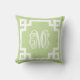 Mint Green and White Greek Key Script Monogram Throw Pillow