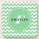 Mint-Green And White Monogram Chevron Pattern Coaster