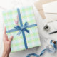 Pretty wrapping paper done in a light green, mint green, and white plaid pattern. Great for every day use like birthdays and baby showers. Chose from three different paper style and sizes.