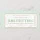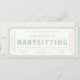 This babysitting gift voucher design features a classic stripe design. The "babysitting" heading is an image that cannot be edited. All of the other text is fully editable. For more advanced customization of this design, simply select the "Customize It" button above.