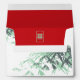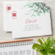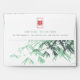 Oriental zen mint green and white bamboo leaves with a rectangle double happiness symbol on the inside and a red double happiness on the front of the envelope. An elegant and stylish chinese themed wedding design which is modern, simple and classy.