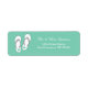 Mint green beach slippers Return Address Labels. Trendy sandals with love symbol design and customizable background color. Personalizable labels for summer destination baby shower, bridal shower, beach wedding, birthday party or home. Stylish script typography letters. Cute heart icon shoes printed with your contact details. Part of complete set.