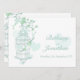 Mint green birds open cage wedding invitation