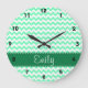 Mint Green Chevron Large Clock