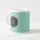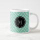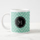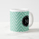 Mint Green Chevron Pattern | Black Monogram Giant Coffee Mug