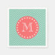 Mint Green Chevron Pattern | Coral Monogram Napkins