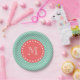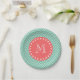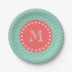 Mint Green Chevron Pattern | Coral Monogram Paper Plates