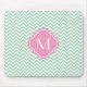 Mint Green Chevron Zigzag Stripes with Monogram Mouse Pad