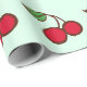 Bright red cherries decorate this stylish holiday wrapping paper. The design is from original art.