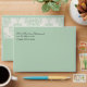 Pretty mint green envelope, with a mint green and ivory damask pattern on the back flap and on the inside. Black return address, on the front of the envelope, is ready to personalize for your thank you cards. Lovely with our matching wedding invitations.
