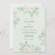 Delicate roses and eucalyptus leaves in soft hues adorn this design. A serene palette of mint green, cream, and muted sage creates an ethereal and romantic atmosphere. This artwork evokes a tranquil and graceful feel.
