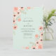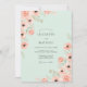 This design features a serene mint green backdrop adorned with delicate watercolor florals. Soft peach roses and anemones with dark centers bloom along the sides, accompanied by sage green leaves and stems. The aesthetic is airy and romantic, perfect for a seasonal springtime event or a whimsical outdoor affair.
