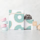 This cute wrapping paper features patterns of donuts with sprinkles and mint green icings on a white background. Change the background color and personalize it for your needs. You can find matching products at my store.