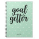 This stylish notebook features a trendy mint green background with white polka dots, and the phrase "goal getter" in modern typography. Personalize with your name.