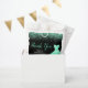 A beautiful mint green themed elegant watercolor dress gown on a black background with faux glitter at the top and bottom of the favor bag.