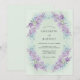 This ethereal design features a soft mint green backdrop adorned with a lush border of purple lilac clusters and delicate greenery. The watercolor style creates a romantic and airy mood perfect for a nature-inspired spring event. Vibrant floral elements encompass the middle, offering a fresh and sophisticated botanical aesthetic.
