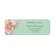 These mint green and floral return address labels are perfect for a spring to late summer wedding or similar occasion. The floral design shows peach and white flowers, beautiful greenery and some rose-gold accents for an added romantic touch.