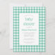 Plain white envelopes are included with paper invitations and will come to fit the invitation size you select. If you don’t need the envelopes, you may choose to not receive them by selecting the dropdown below "Envelopes" and choosing "None." If you’d like to have a design on your envelopes, you can browse all of these available envelopes to find the design that complements your Mint Green Gingham Check Baby Shower Invitation.