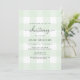 Having your Mint Green Gingham Christening Invitation match the theme of your party is a great detail that your guests will appreciate. The thoughtfulness of a consistent party theme is often appreciated and can show your guests that you can host a cohesive event.