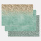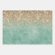 Mint Green Glam Gold Sparkle Glitter Wrapping Paper Sheets