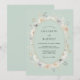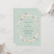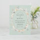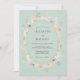 This design showcases a soft mint green background accented by a delicate collection of cream roses and pale peach blossoms. Silvery greenery and dusty miller leaves provide a lush, botanical feel to the aesthetic. The palette is airy and romantic, making it ideal for a sophisticated spring or summer event.