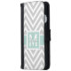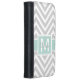 MINT GREEN, GRAY CHEVRON PATTERN PERSONALIZED iPhone WALLET CASE