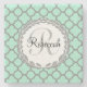 Mint Green Gray Quatrefoil Name Monogrammed Laurel Stone Coaster